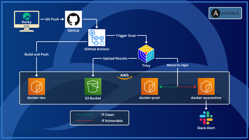 Automated a CI/CD pipeline using GitHub Actions, Trivy, and AWS ECR/S3 to scan and promote secure containers, with SBOM generation and Slack alerts for vulnerability tracking